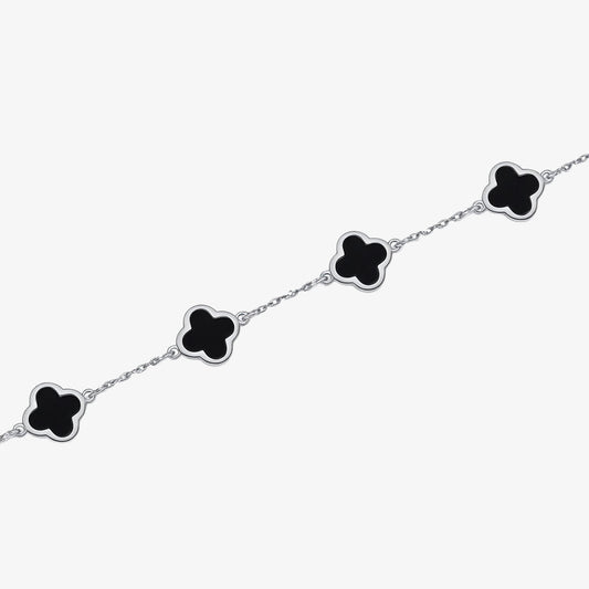 5 Clover Black Stone Bracelet
